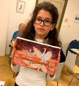 - Učinek delavnice: V treh urah se otrok nauči dve vrsti uporabljanja akvarelne tehnike: suho na suho, moro na mokro, ter kombinacije obeh. Sezna se s tehniko subtilnega plastenja tako da lahko že po delavnici nadaljuje s slikanjem sam doma.
