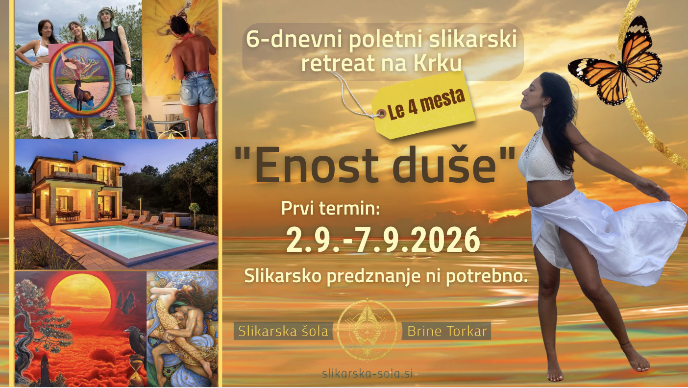 Vrbnik, otok Krk Vrbnik,Vrbnik, Krk,Croatia (Local Name: Hrvatska)Butični slikarski retreat “Enost duše” na Krku 6 dni, 5 nočitev, dva termina, le za štiri osebe na termin, z dvema učiteljicama in terapevtko vodne terapije,praksa manifestacijskega slikanja Za zgodnjo prijavo do 30. aprila 2026 velja znižana cena 1.555 eur na osebo (redna cena je 1.777 eur). Luksuzni apartmaji, soba z balkonom, neomejena savna, privat bazen, […]