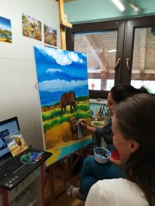 Proces slikanja se prične že pred oddihom, s tremi srečanji on-line. Na teh srečanjih se vizualizira slika, ki bo naslikana.