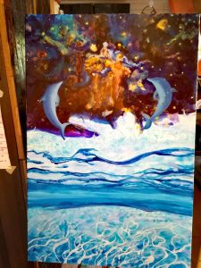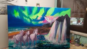 Z manifestacijskimi slikarskimi vikend retreati sem pričela v času karanten. To je bil čas, ki mi je omogočil globoko umiritev, da je lahko prišlo do integracije in sinteze vseh mojih prejšnjih izkušenj, do sinteze izkušenj moje lastne slikarske poti, do sinteze izkušenj iz 15-letnega poučevanja v svoji slikarski šoli, na svoj način, do implementacije znanja astrologije ter do integracije preko odprtja izvornega svetlobnega jezika, ki podpira moje delo.