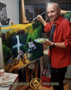 Sam slikarski proces, te umiri, poveže s seboj. Popelje te v meditativno stanje, v stik z nezavednim, v flow in fokus. Popelje te domov. K tebi. V varnem prostoru te, na notranje potovanje, v brezmejne širjave notranjih pokrajin, popeljem z vsem znanjem in milino. Ne gre drugače kot z vsemi deli sebe, ki se odslikajo na slikarsko platno za zmeraj.