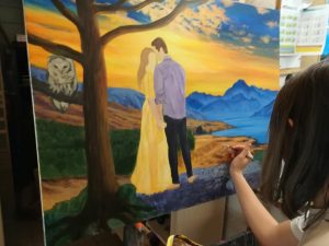 Kar pa je bistveno… domov boste odnesli eno pravo umetniško delo na platnu ali na akvarelnem papirju, ali s svinčniki na papirju. Sama tehnika je prav tako prepuščena izbiri posameznika.